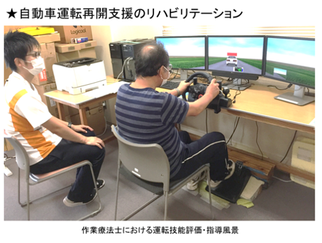 自動車運転はその人らしい自立した生活や社会参加を行う上で重要な移動手段の1つです。養和病院では平成19年より、脳血管疾患発症後の自動車運転を希望する方に対し、院内での身体・高次脳機能評価に加え、自動車学校での適性検査及び実車評価(以下、検定) を行っています。さらに、医師の診断書により公安委員会で判定を受けるという一連の取り組みを行っています。