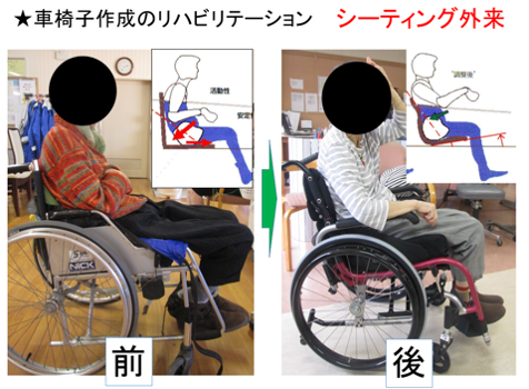 | 2.シーティング専門外来 | 車椅子の身体適合評価、車椅子レンタル適合、車椅子新規作製 月~金 午前・午後 |