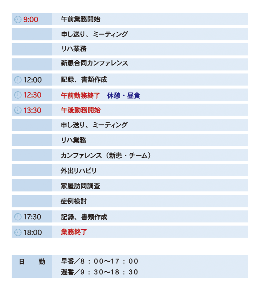 理学療法士・作業療法士・言語聴覚士1日のスケジュール
